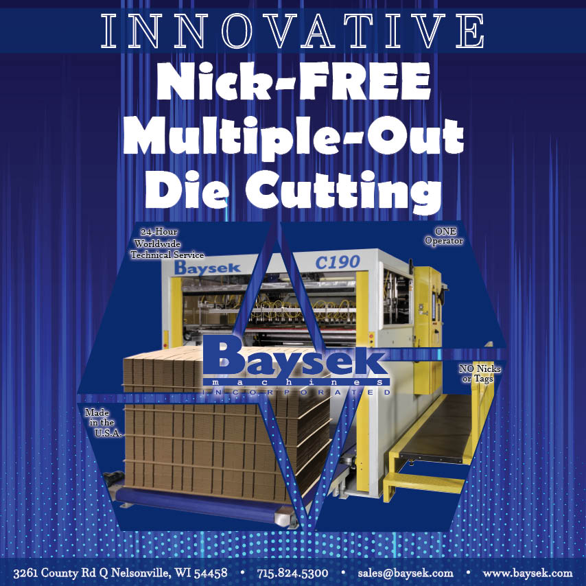 A prolonged state of world change and diminished dependable workforce continues to keep decision makers on a quest for the ability to increase converting quality and production while reducing labor. Fortunately, proven technology of the “one operator” Baysek flat die–rotary anvil die cutting method strongly and consistently delivers on both fronts.