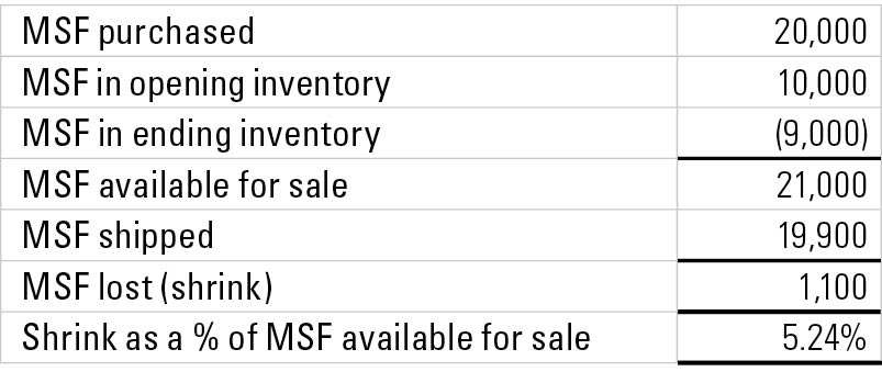 You should start with a simple shrinkage calculation (see table at right).